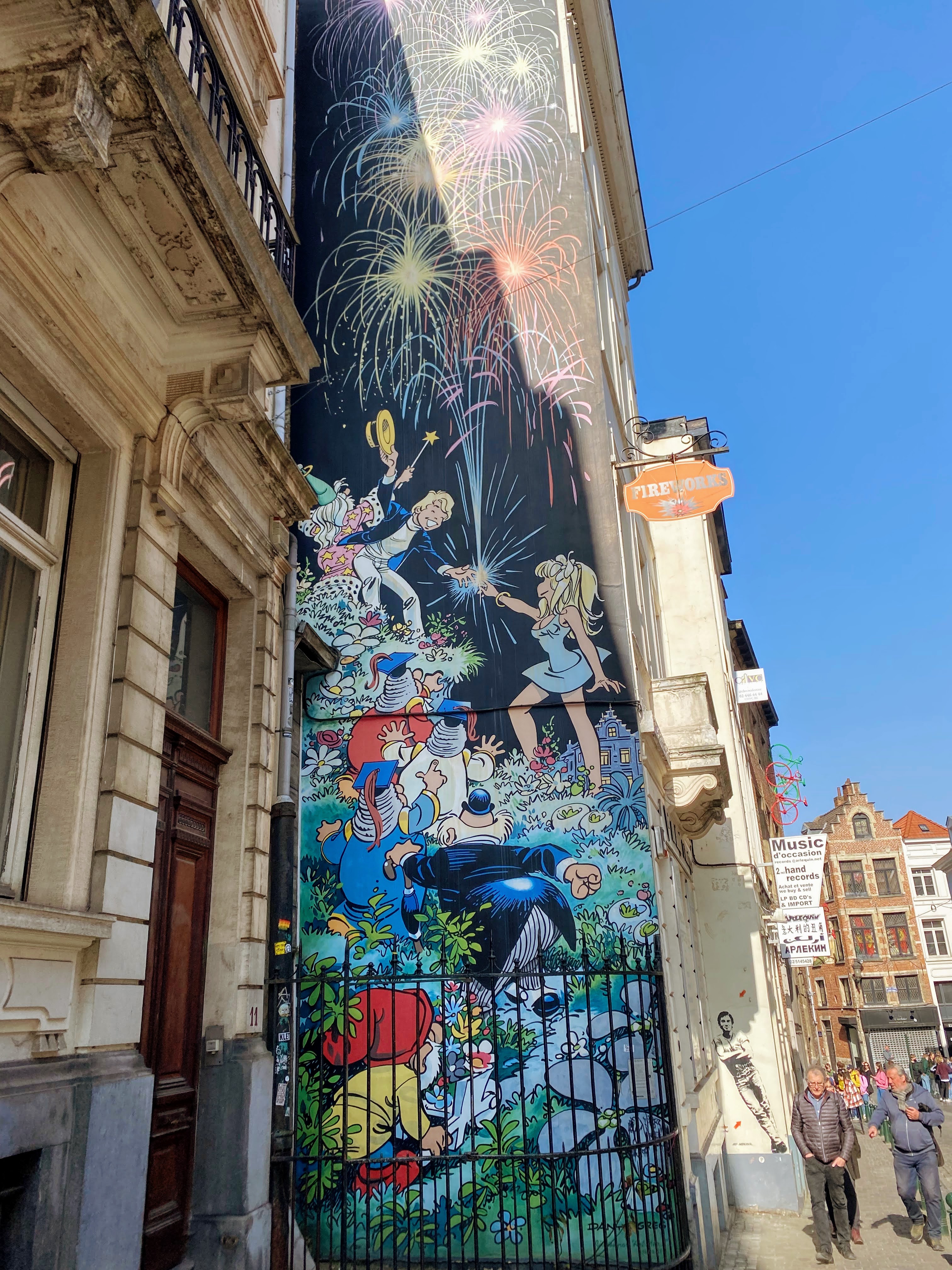 Comics are an important part of Belgian culture. Decorated throughout the city are about 50 murals of iconic Belgian comics, such as the Smurfs and Tintin. It was fun to walk throughout the city center and notice these murals. Each mural had a plaque with a number and description. If I had more time, I would have found a walking route to find more comic walls.