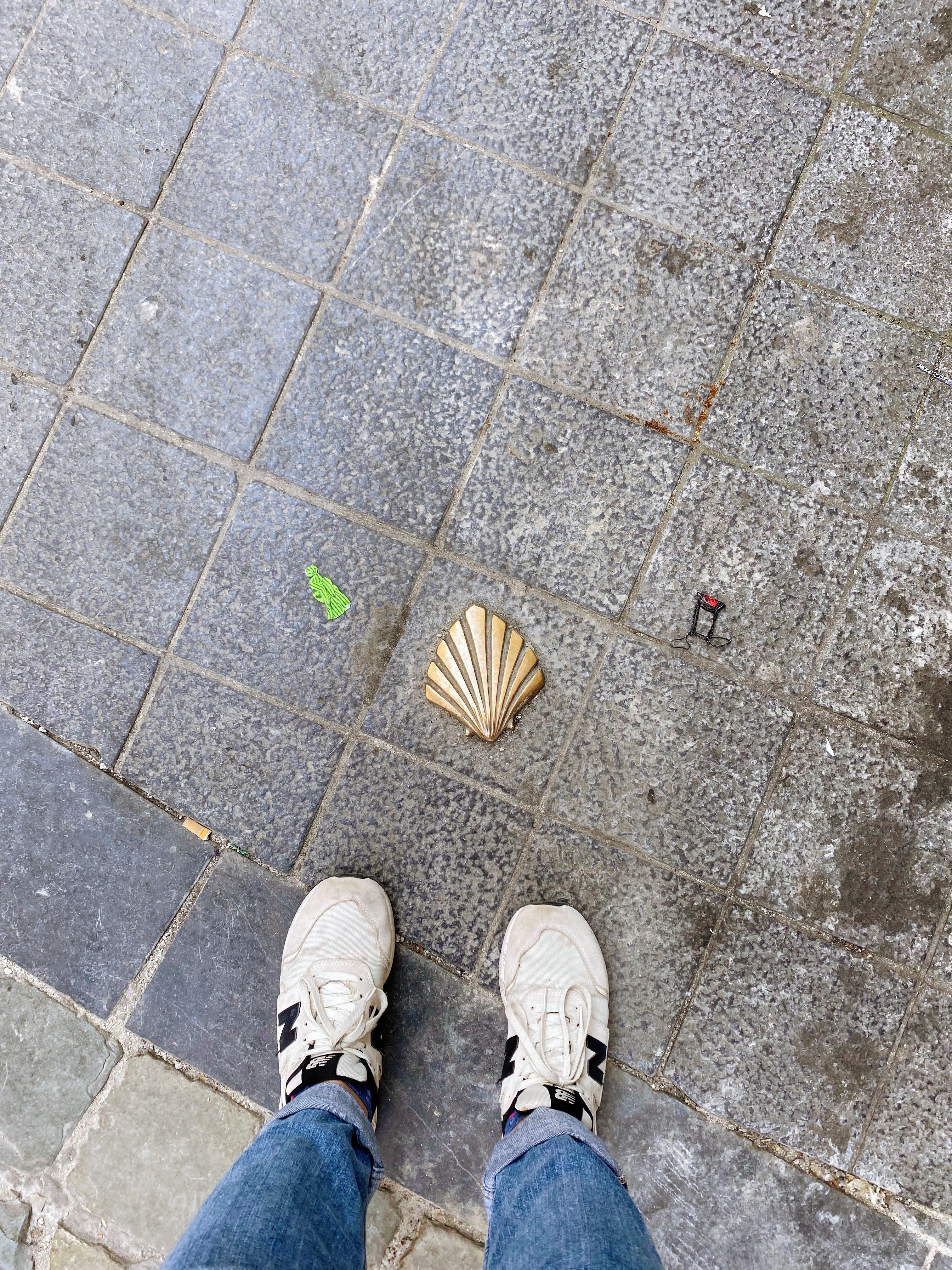 – Throughout Brussels are golden scallop shells on the sidewalks and buildings. These shells point the way for pilgrims on the Camino de Santiago. How cool!