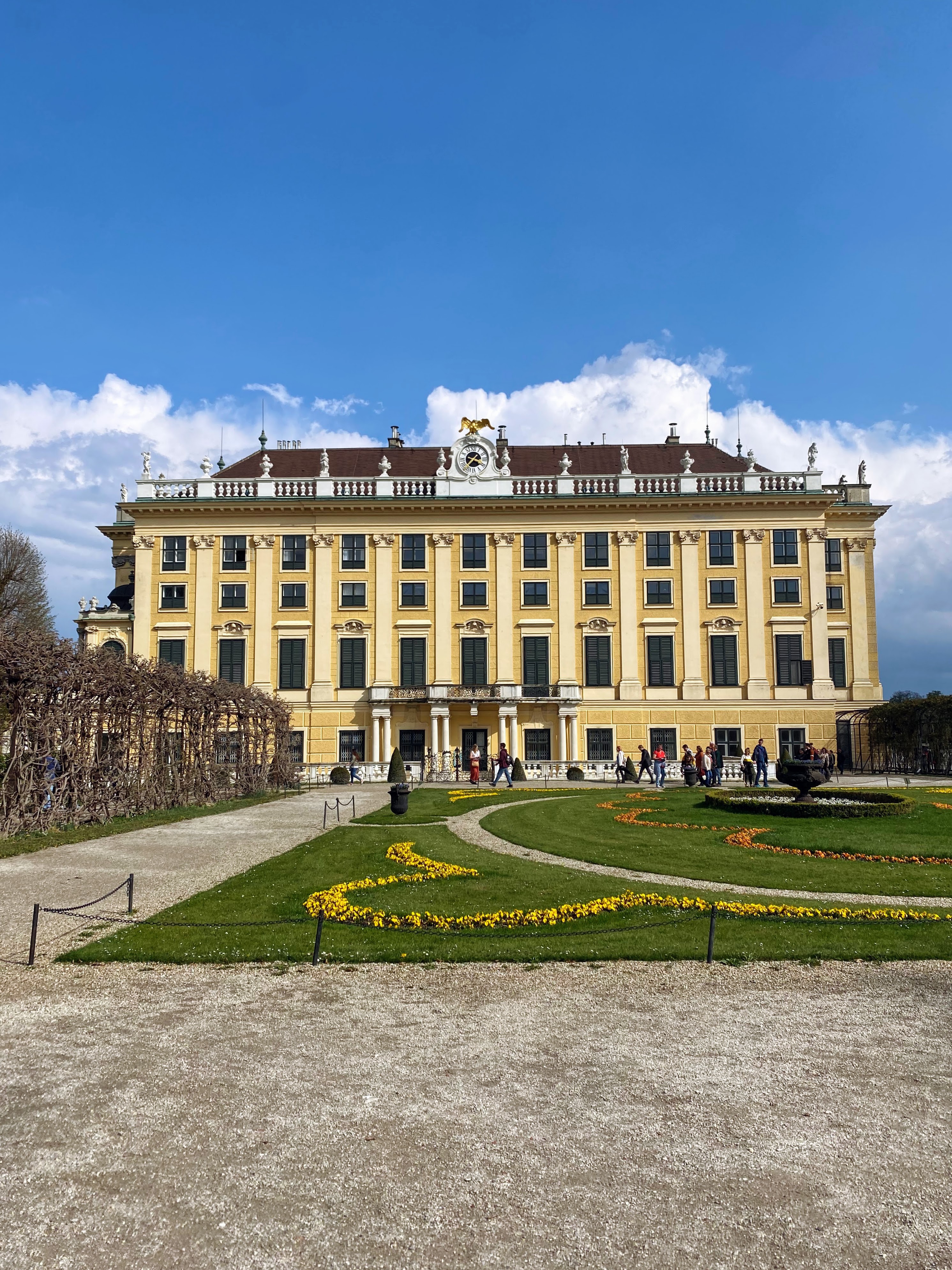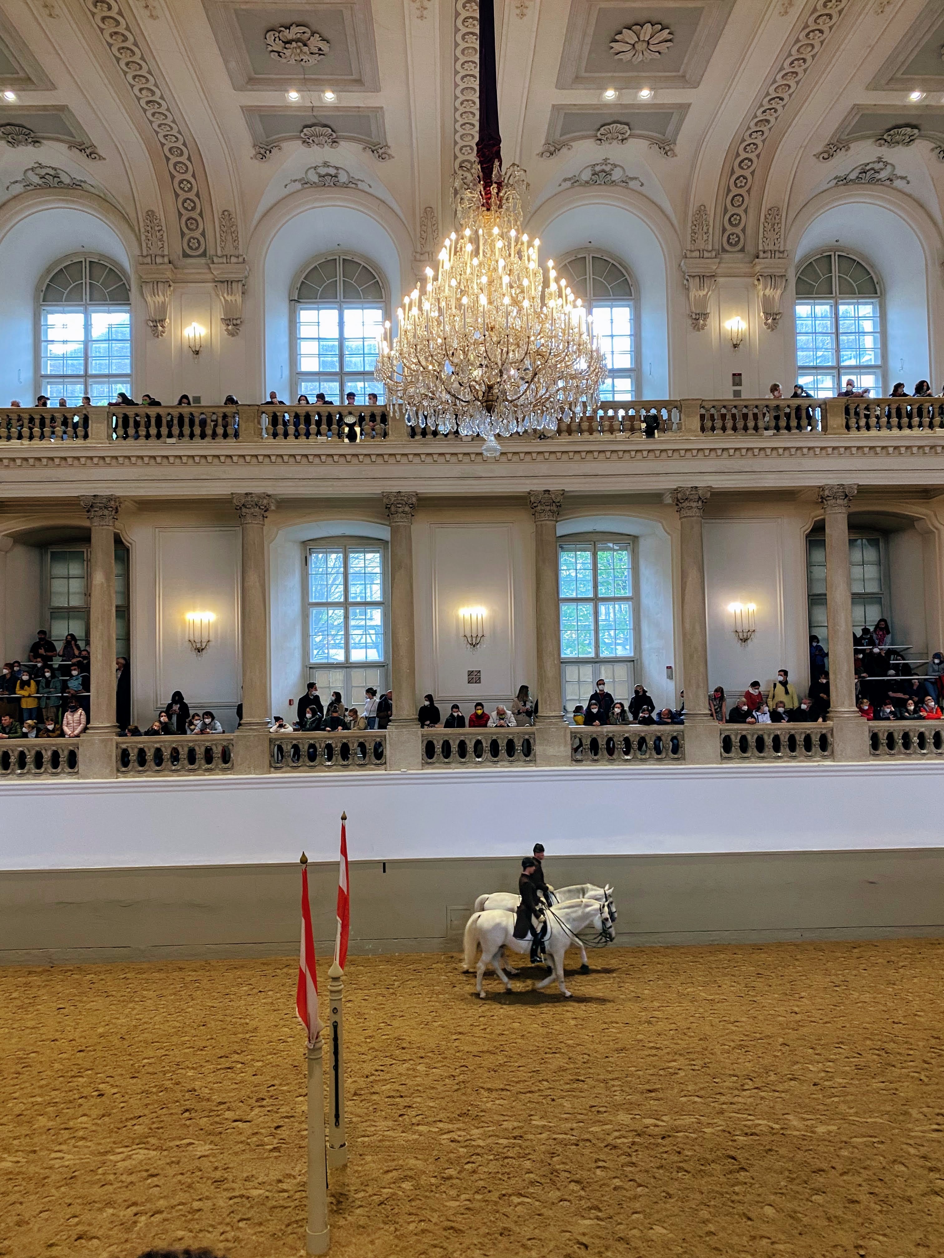 On Friday, we spent our time at the Spanish Riding School and the Habsburg summer palace, Schloss Schönbrunn. We watched the public training session of the famous Lipizzaners to classical music. The tickets for standing room at the training sessions are much cheaper than seats at the performance, and we still saw some epic dressage without the full performance. Photography was not allowed during the performance, but I managed to snap a photo before the announcement.