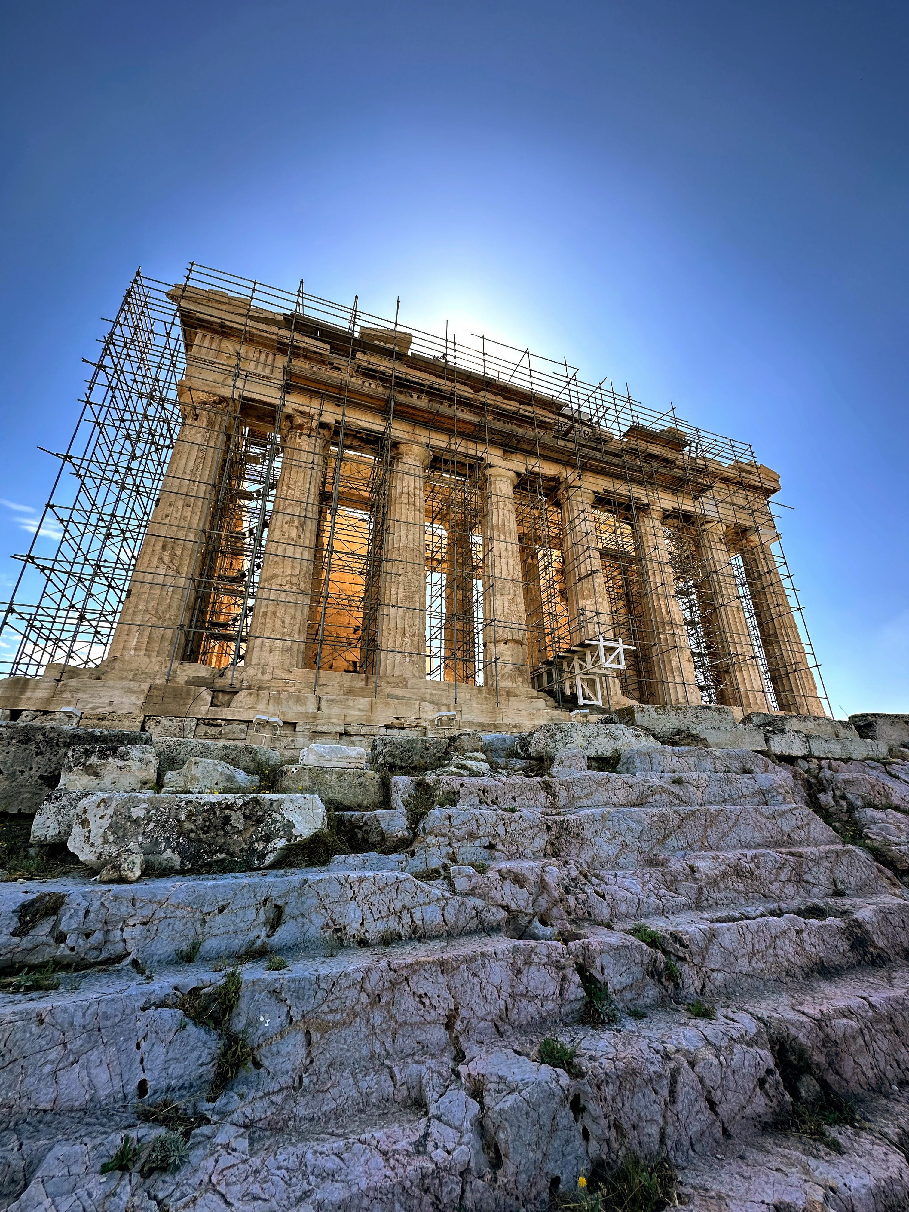 On our first day in Athens, we took a group tour of the Acropolis, one of the seven hills of Athens. It’s incredible how the Temple to Athena Parthenos, is still standing after thousands of years! Parts of the temple were being reconstructed, and our tour guide pointed out the original building and new additions. Even though we visited early morning, the site was full of tourists and cats!
