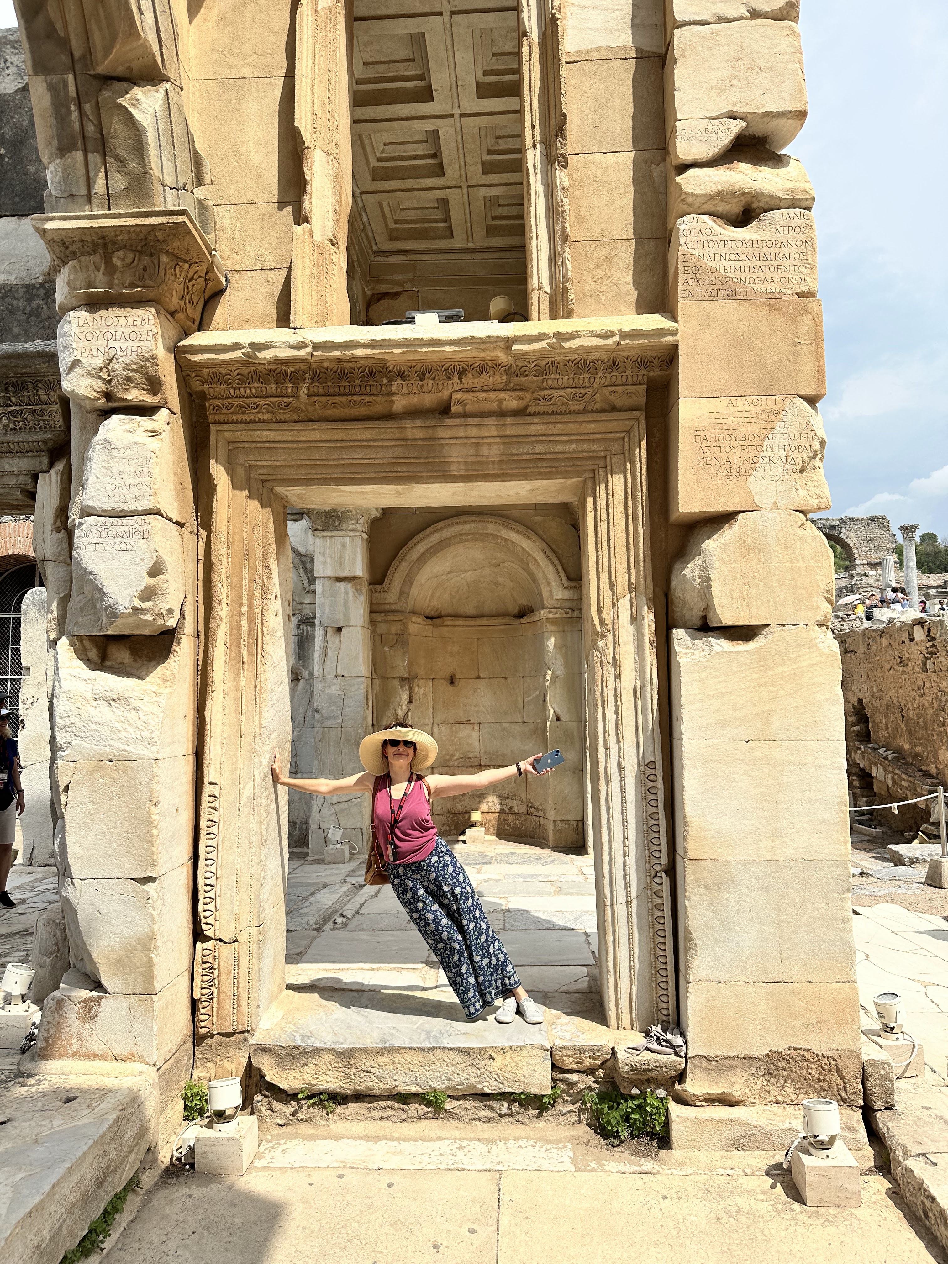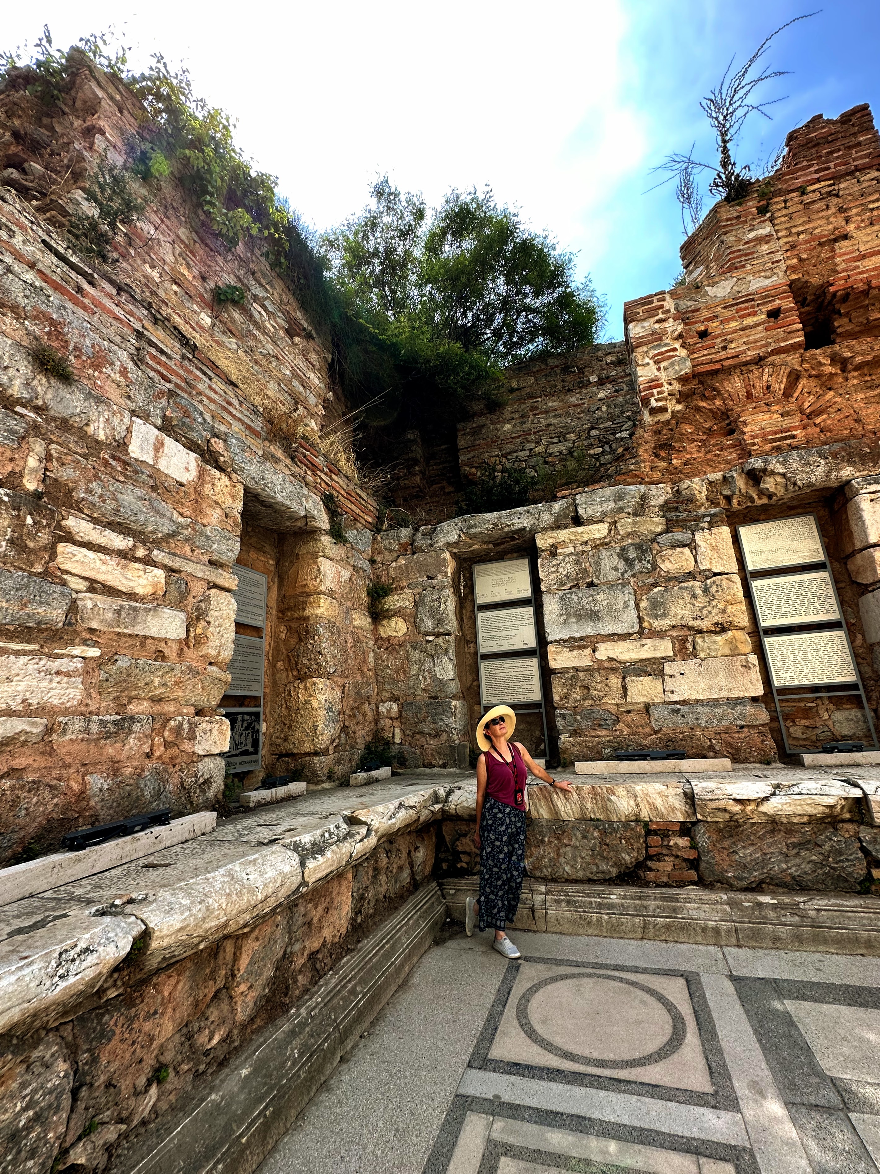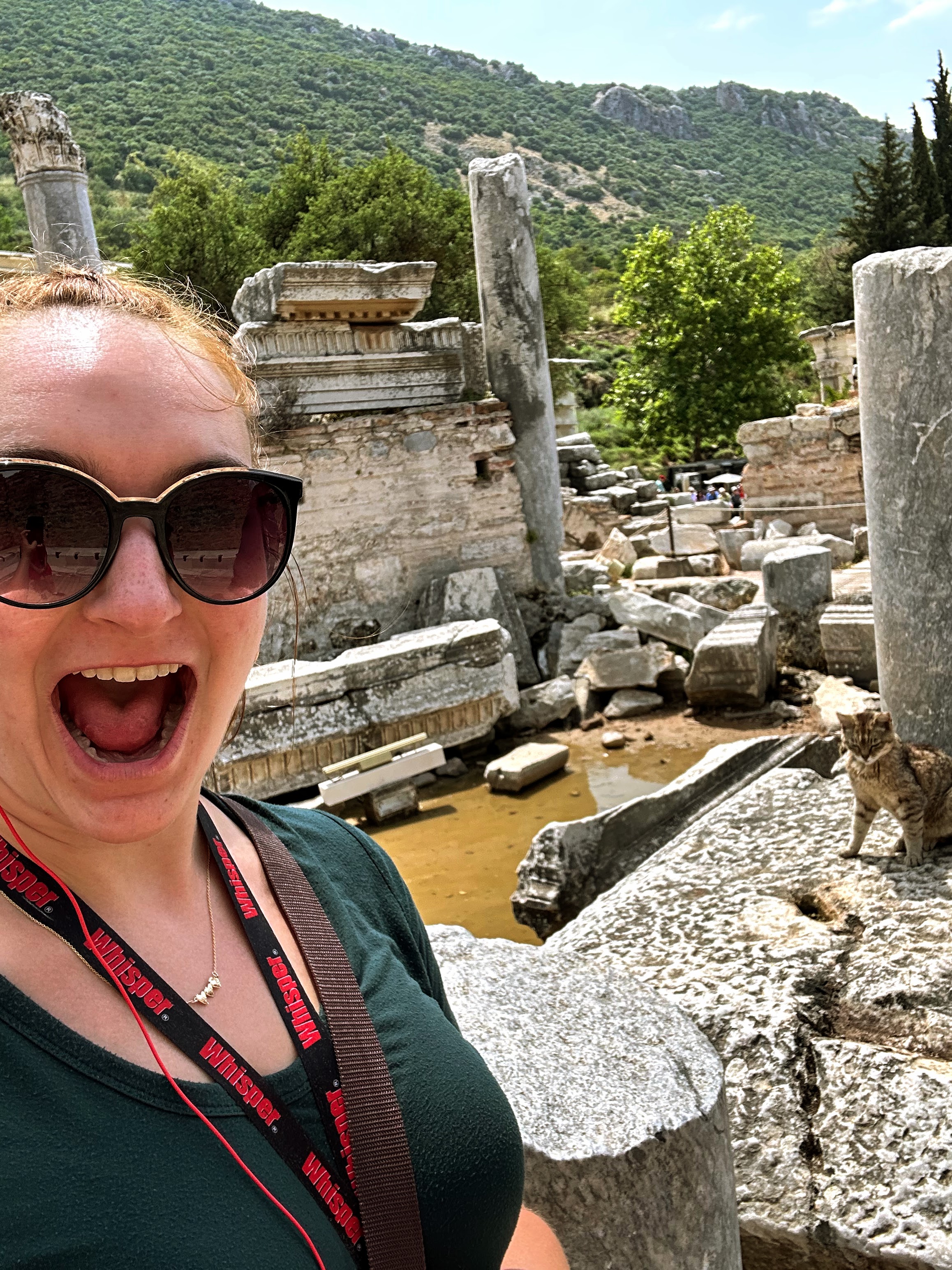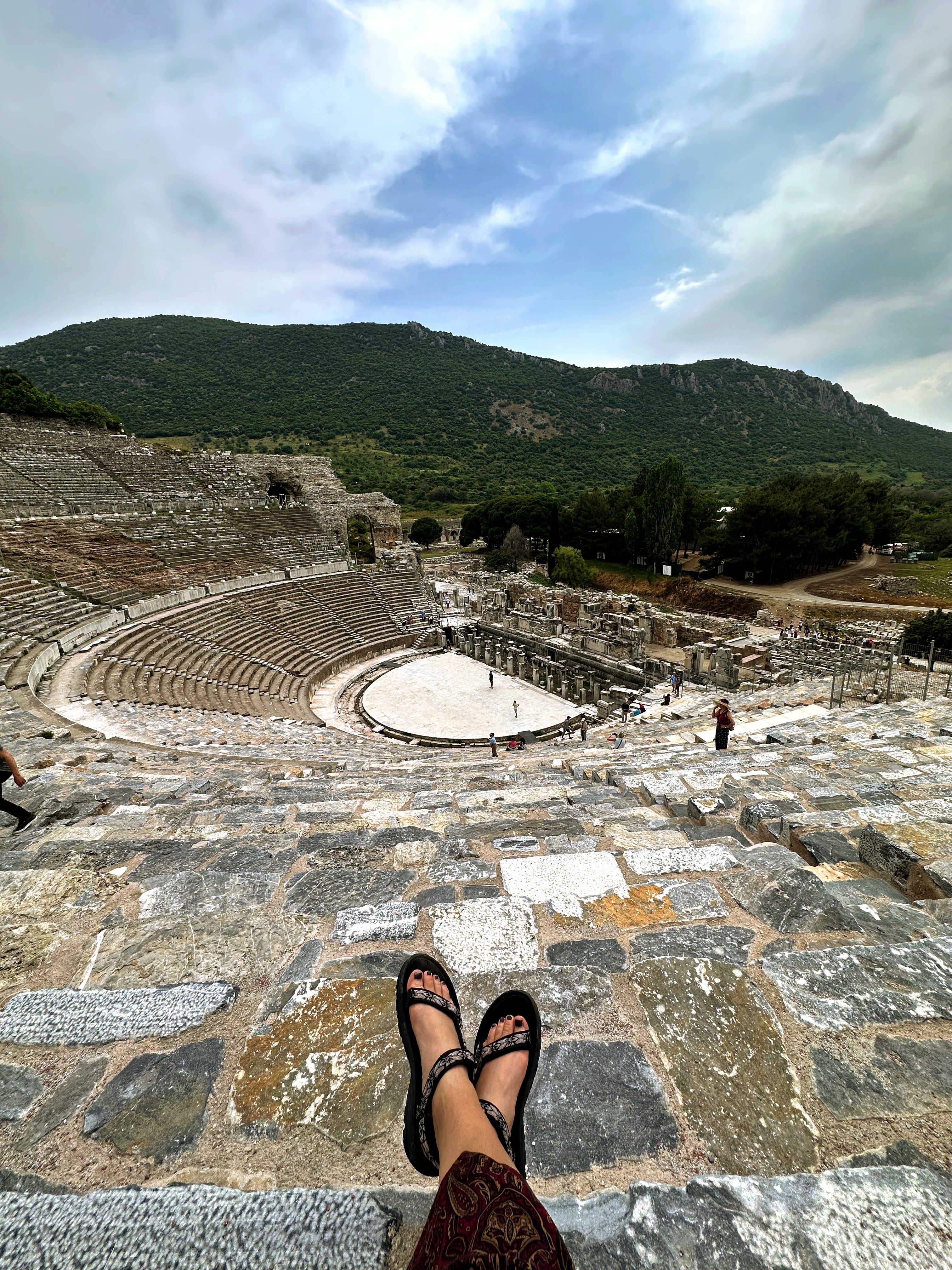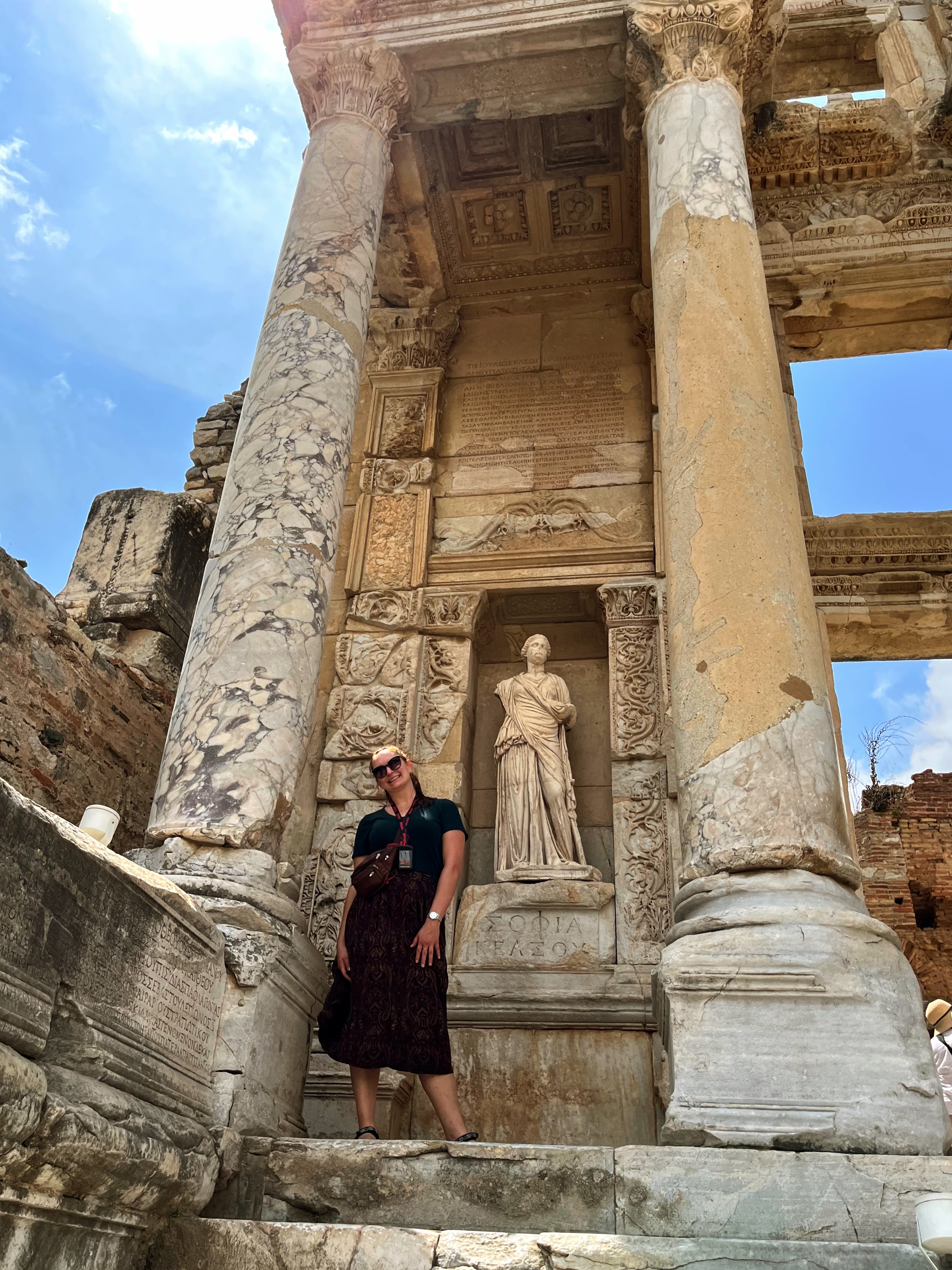 We had fun taking photos throughout the ruins. The slideshow below includes photos of the Nike, the goddess of victory, a cat at the toilet ruins, the library of Celsius, me next to the statue of Sophia, and an amphitheater where St. Paul was sentenced to prison for not worshipping their goddess, Diana.