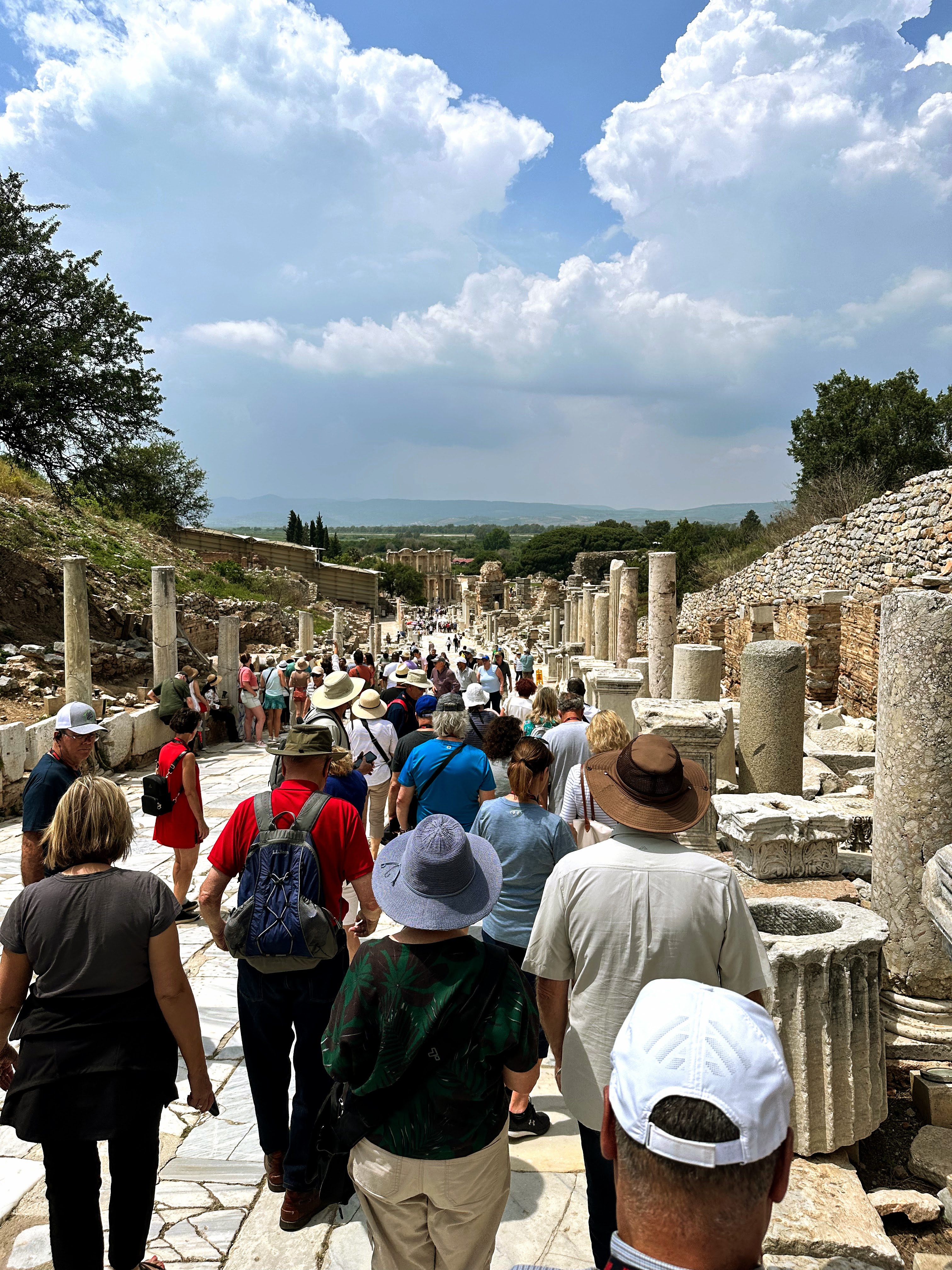 Mom and I were really excited about visiting Ephesus. Mom wanted to see one of the world’s largest archeological sites (13% of the original Ephesus is reconstructed), and I was excited to visit Asia for the first time! Our ship ported at Kuşadası (pronounced “koo-SHAH-dah-suh”), which means “bird island.” I didn’t notice anything different about the birds, but maybe they were significant at one point.
