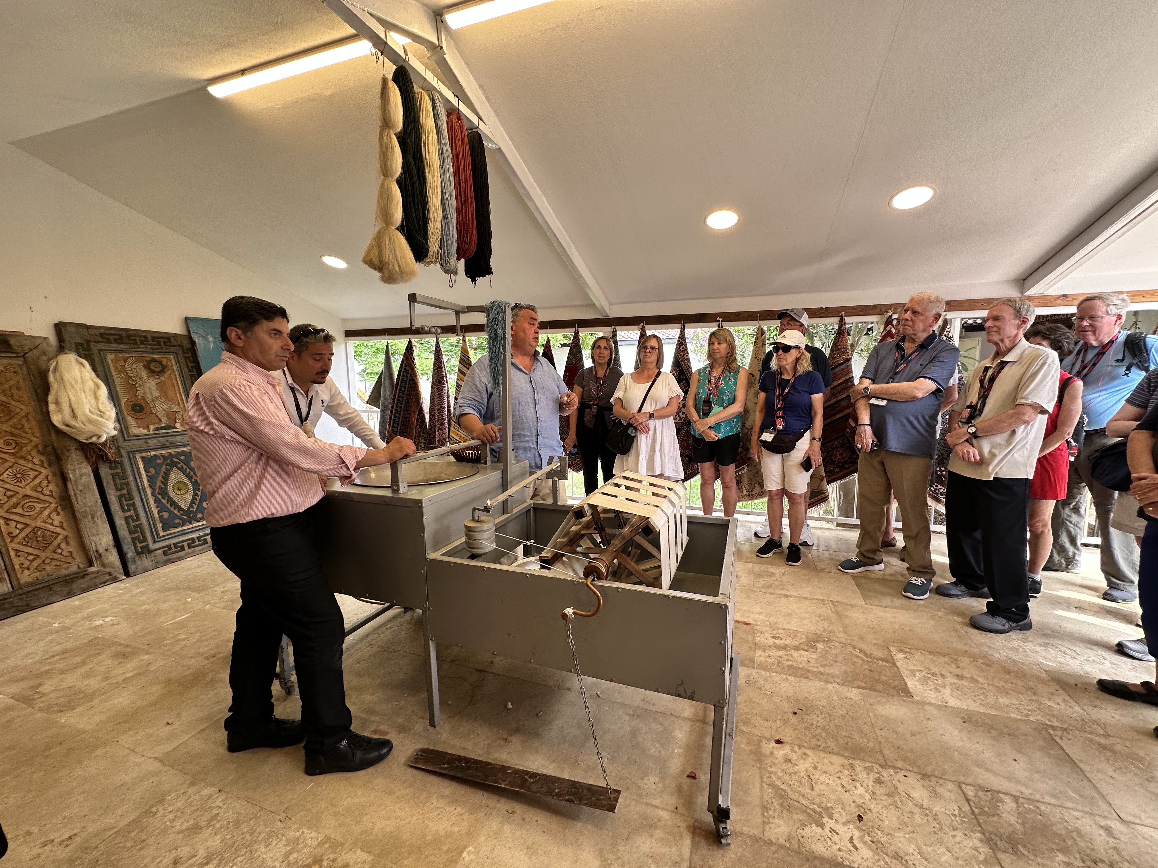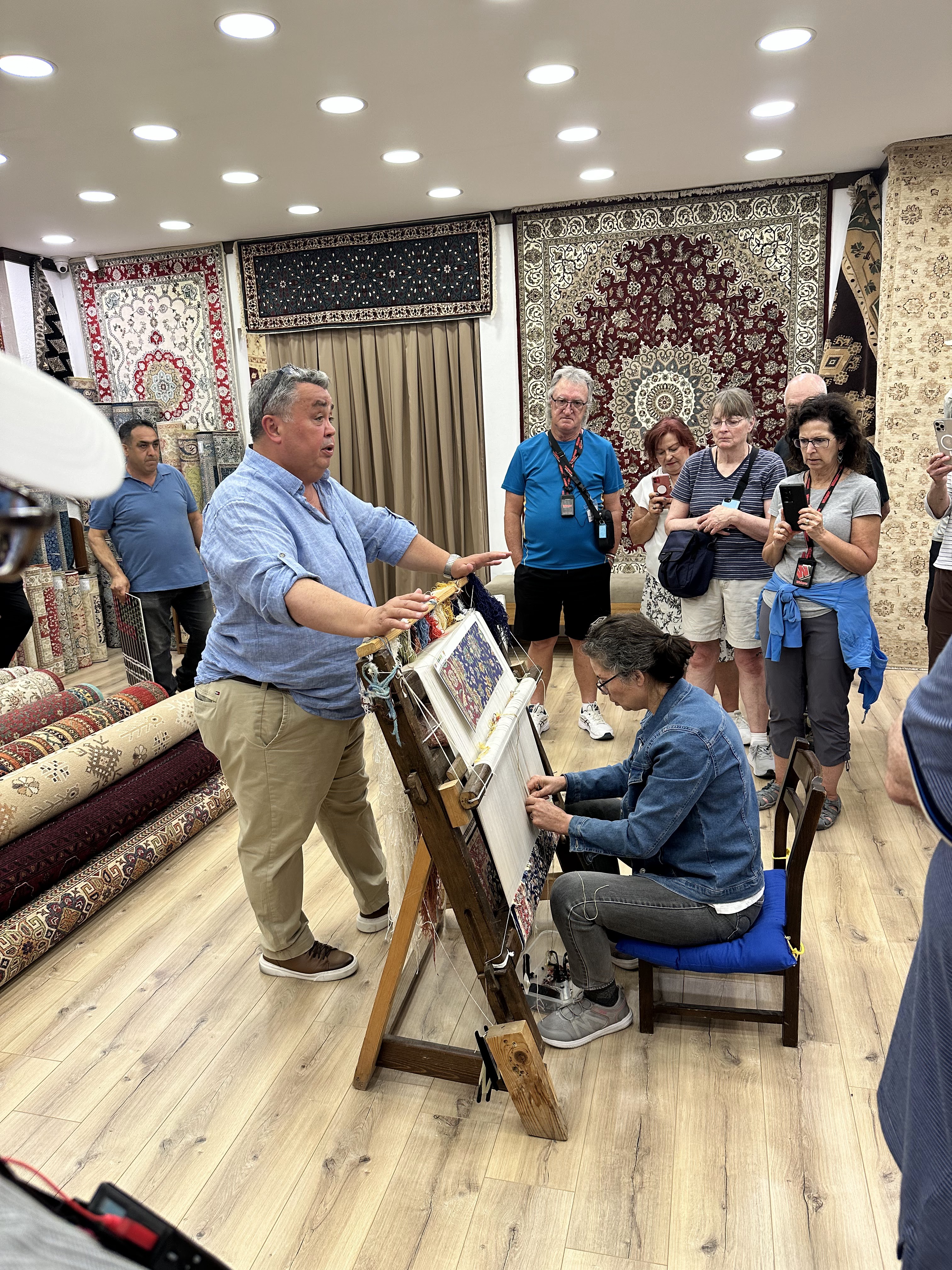 The owner offered our group Turkish tea, wine, and liquor (Raki) while we watched the employees roll out at least 25 different rugs in front of us. The rugs were soft, beautiful, and durable, and could last up to seven generations. One couple in our tour group bought a rug, and it was $25,000! The higher the price, the higher the number of knots in the rug.