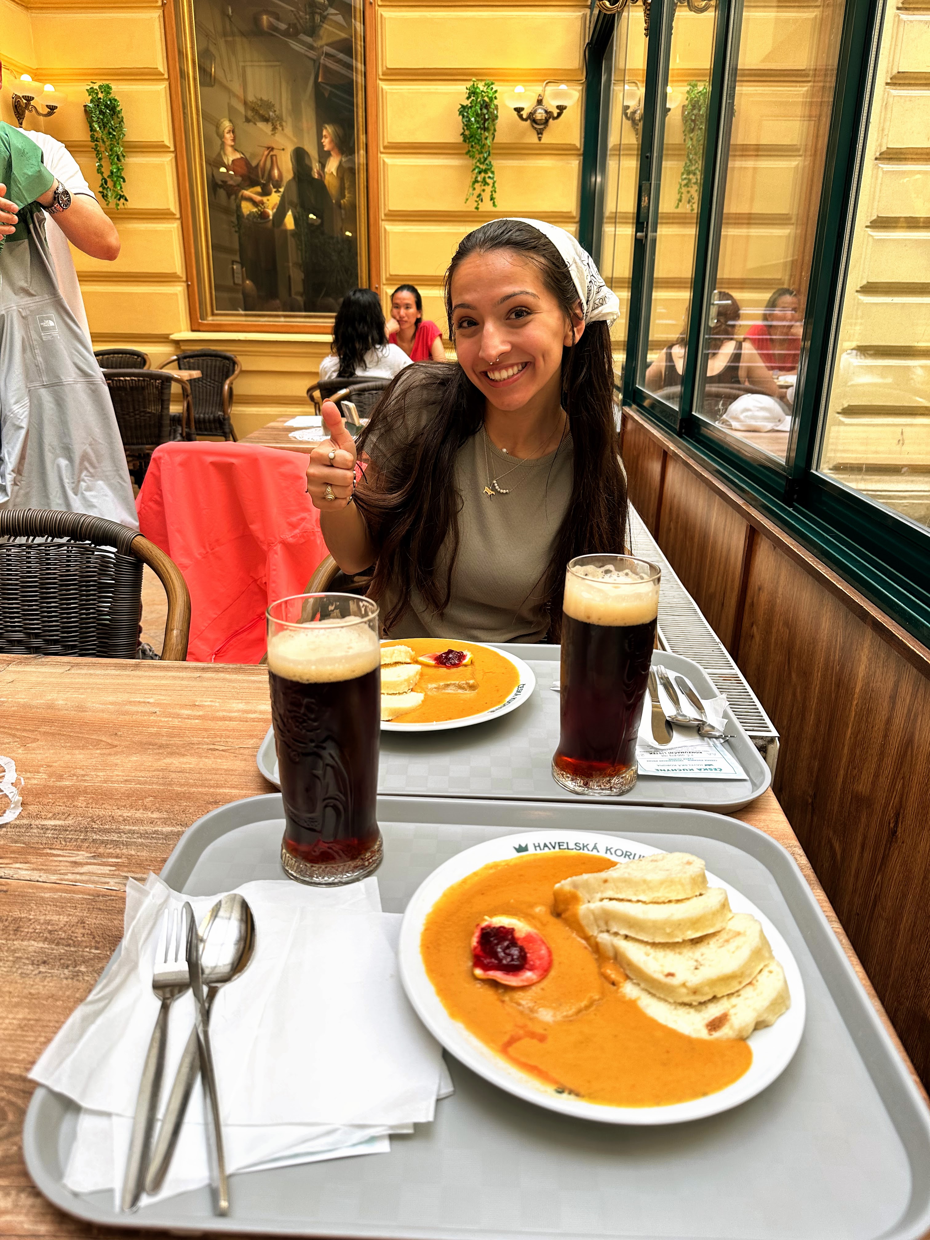 I spent the last few days of my graduation trip visiting my friends from my study abroad who still lived in the city. I stayed in an apartment with my good friend Lydia in Zizkov (Prague 3) – right across from the university I attended last year! On my first night in town, we had my favorite Czech meal at a local pub, svickova, and watched our favorite show, Ted Lasso 🙂