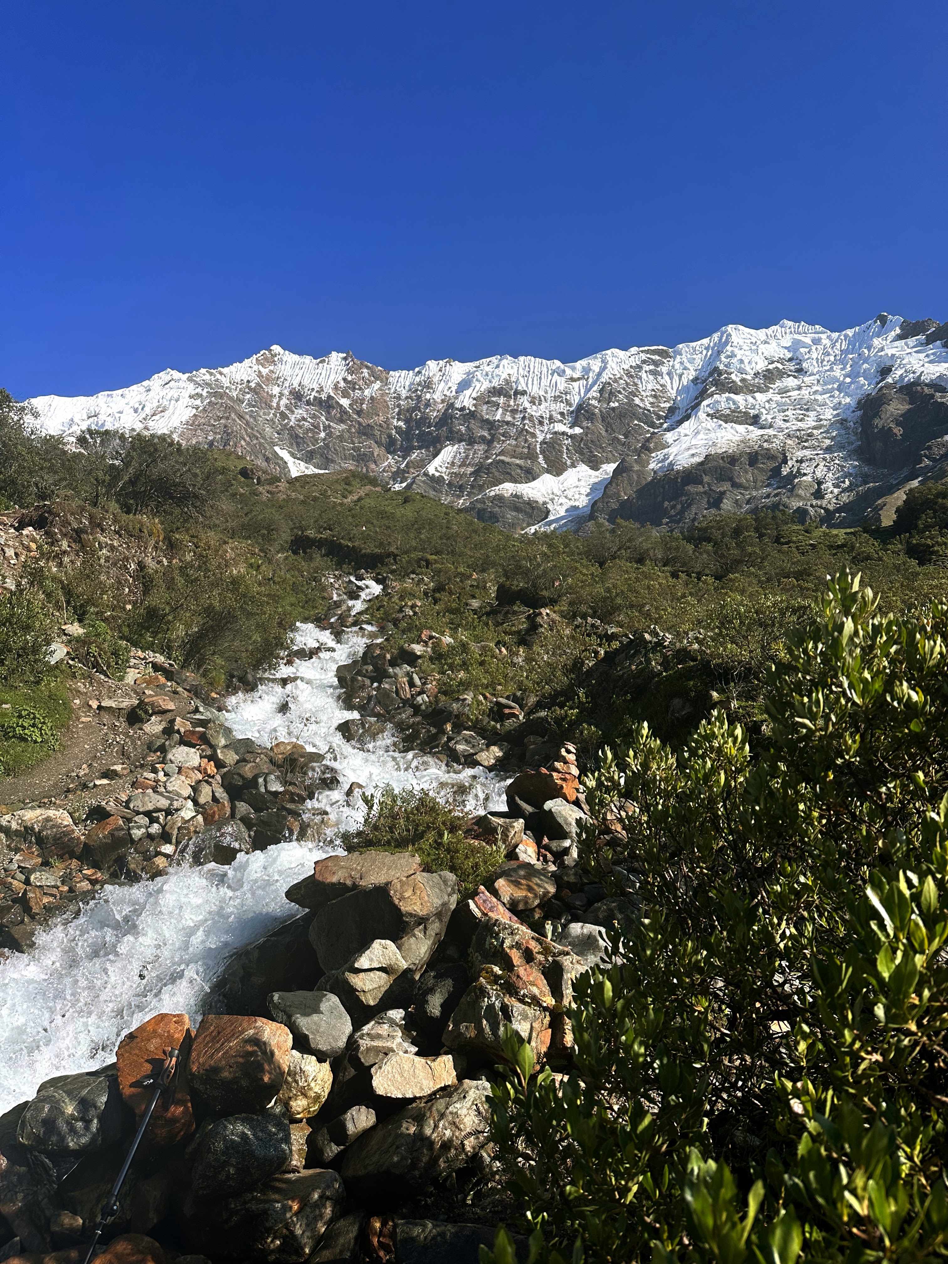 Peru’s rainy season was just starting when I visited in December, and after lunch, a steady drizzle fell the rest of the afternoon. Throughout this trek, I experienced ten different microclimates, and the changes in environment were most prominent in Day 2. We began the day with chilly glacier views and ended the day in warm jungle surroundings. We were surrounded by exotic flora, gentle waterfalls, and even tiny wild strawberries! The frequent weather changes made it challenging to pack light, but seeing the diversity in nature is one of my favorite memories of the trek.