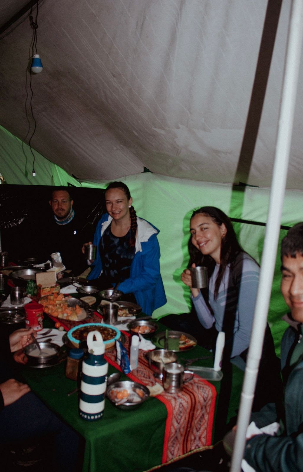 After a brief lesson on the discovery of Machu Picchu, we hiked the final 30 minutes downhill to our campsite, Llactapata Lookout. We spent the evening exploring the campsite grounds and chatting after dinner. Somehow, we all took turns showing our party tricks on the table. Jaime, Alex, Faheem, and Asmaa did variations of pushups, and I did the splits on the table! Believe it or not, we were completely sober, haha!