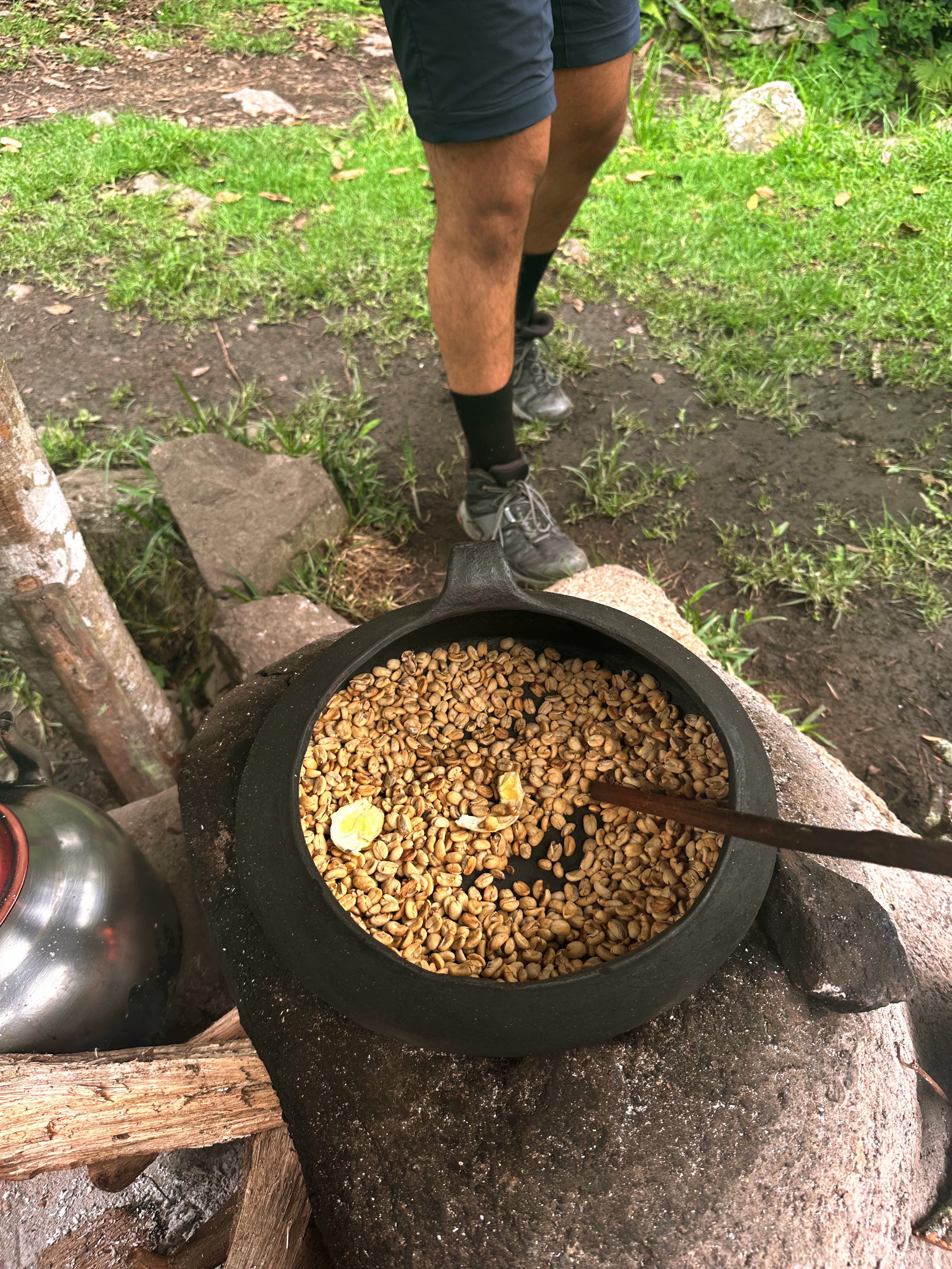 At the coffee farm, Jaime and the woman who owned the land (Mami, as we affectionately called her) showed us the process of making coffee from scratch. First, we harvested the red “berries” from the Arabica coffee trees. Then, we poured the beans through a hand crank deshelling machine. We set these beans out to dry and roasted the already dried beans from last week. I took a turn out stirring the beans in the pot over the fire. Mami threw in sugar and orange peel into the pot of roasting beans for flavor. Just when the beans turned dark, Mami took the pot off the fire and let the guys of the group take turns grinding the beans. With these grounds, she served the best coffee I’ve ever tasted with fresh avocado and yuca (or “jungle potato” as Jaime calls it). I bought a bag of coffee beans from Mami before we left her farm. 😊