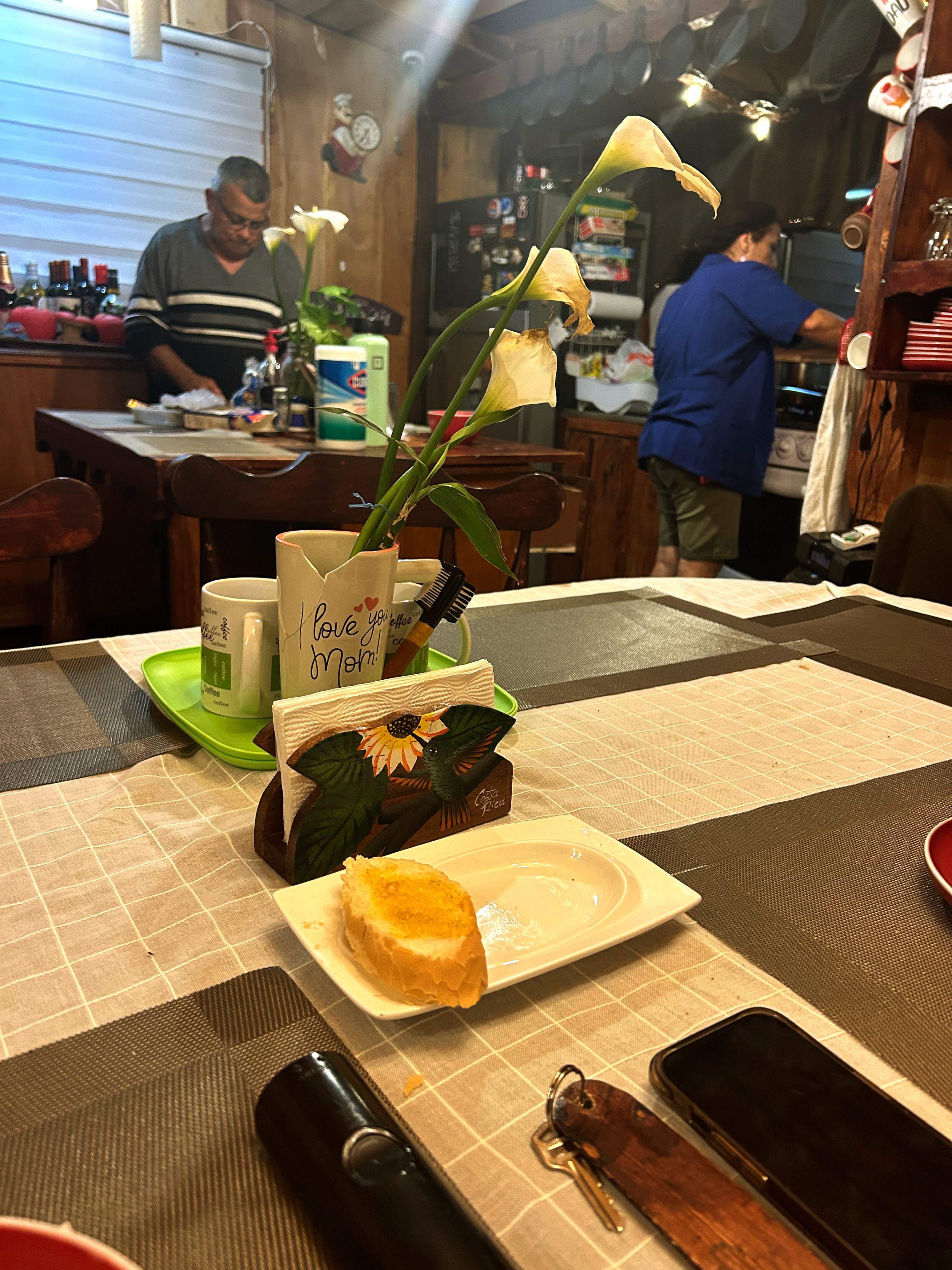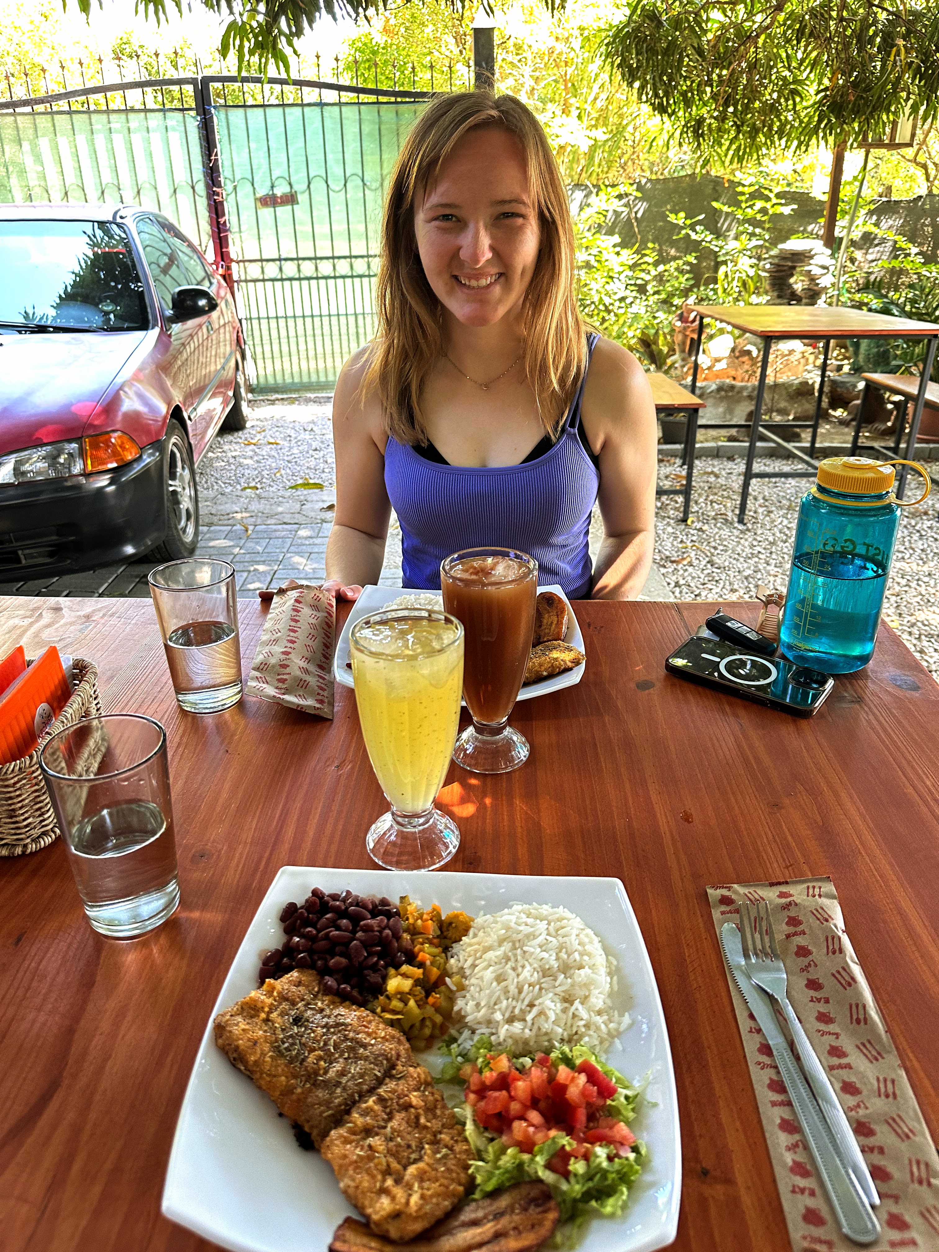 We spent the night at these cool, glamping domes near the Poás Volcano! We checked in and ordered dinner from the owner and his wife, who lived on the property. Lydia and I chatted with them from their dining room table as they prepared our meal. They were gracious hosts and happy to speak slowly so we could practice our Spanish. Their home-cooked dinner was simple and delicious, and the perfect way to close out the day!