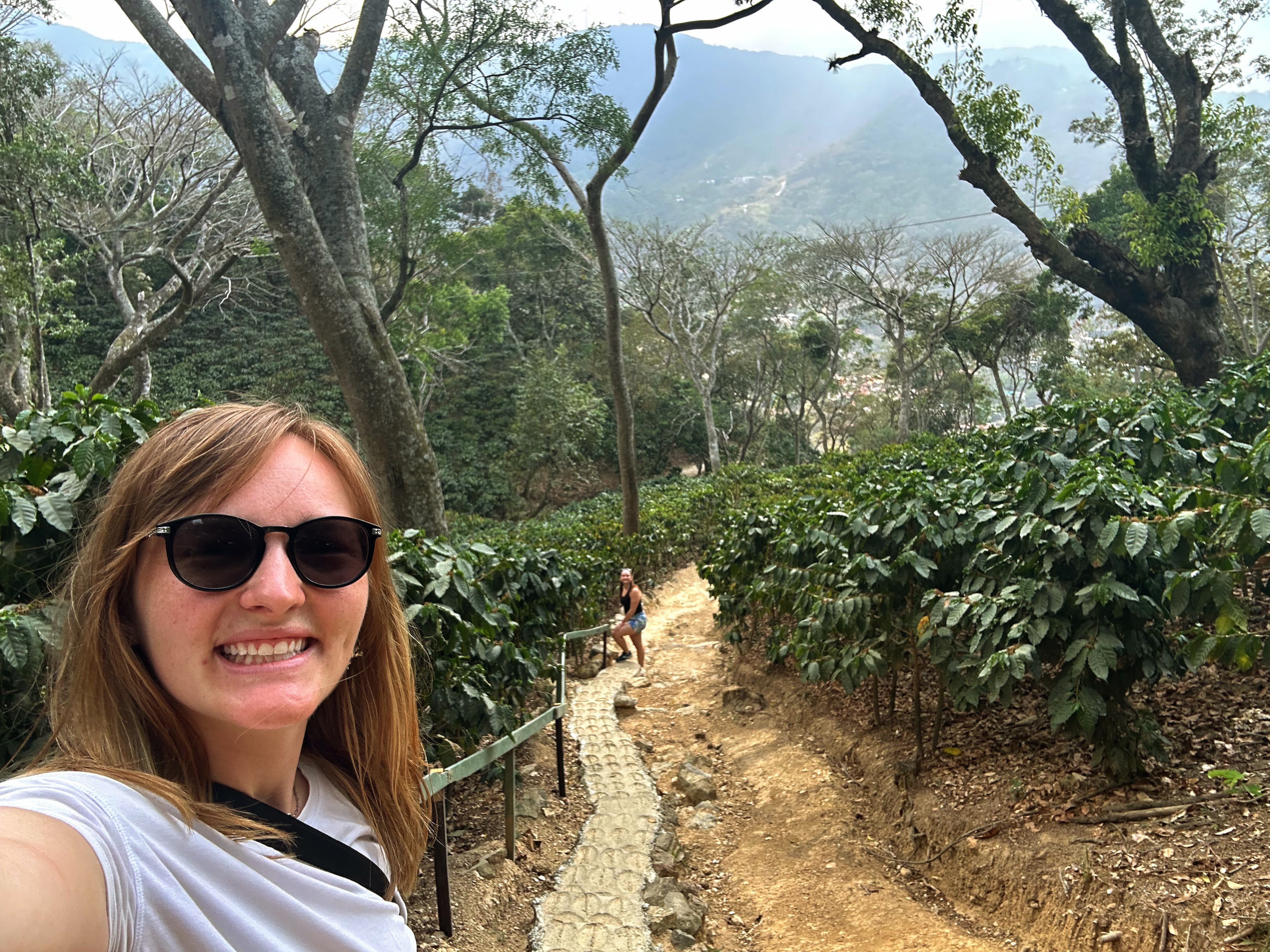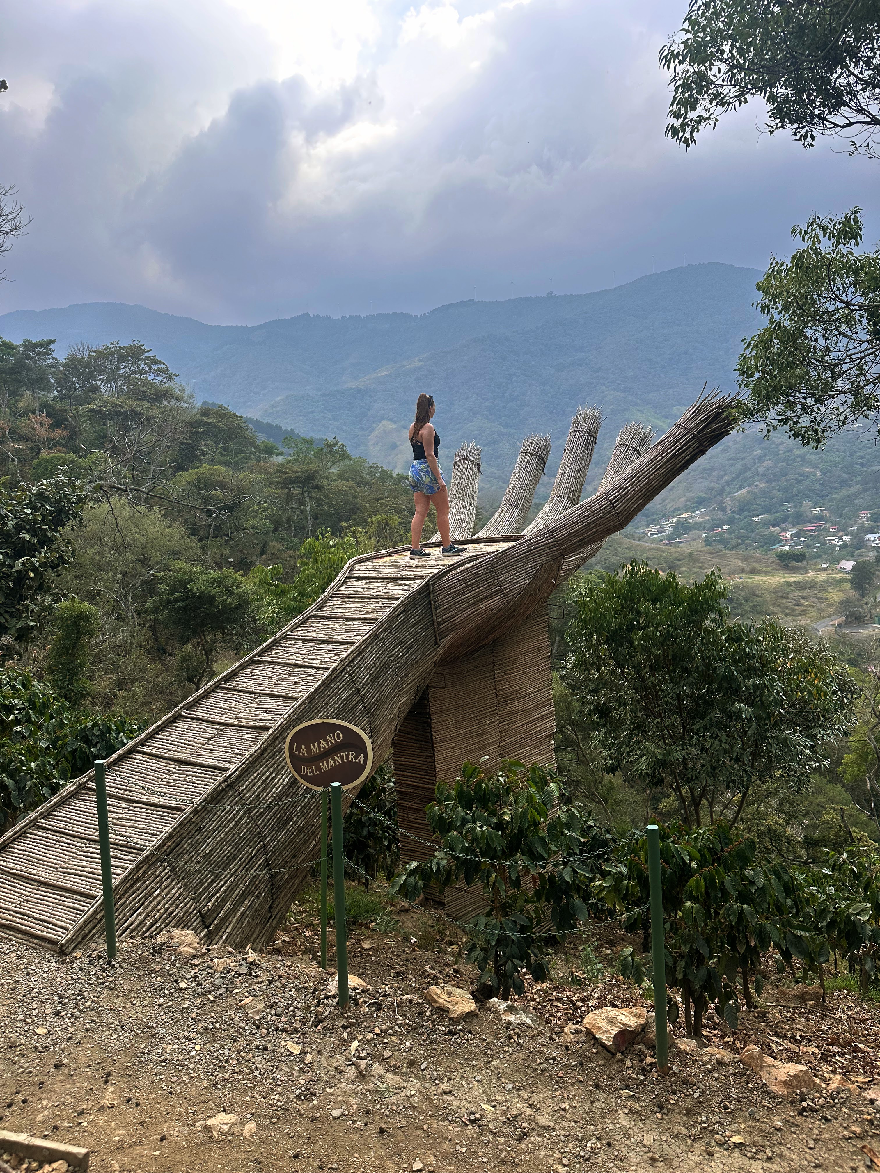 In the afternoon, we toured a coffee farm in the outskirts of San Jose, called La Hacienda Chimba. This tour was not as informative or entertaining as the one I had in Peru, but it was still cool to walk through the large-scale coffee making process. After the tour, we hiked around the property and walked onto this cool hand structure! We each took home a bag of freshly roasted coffee beans.