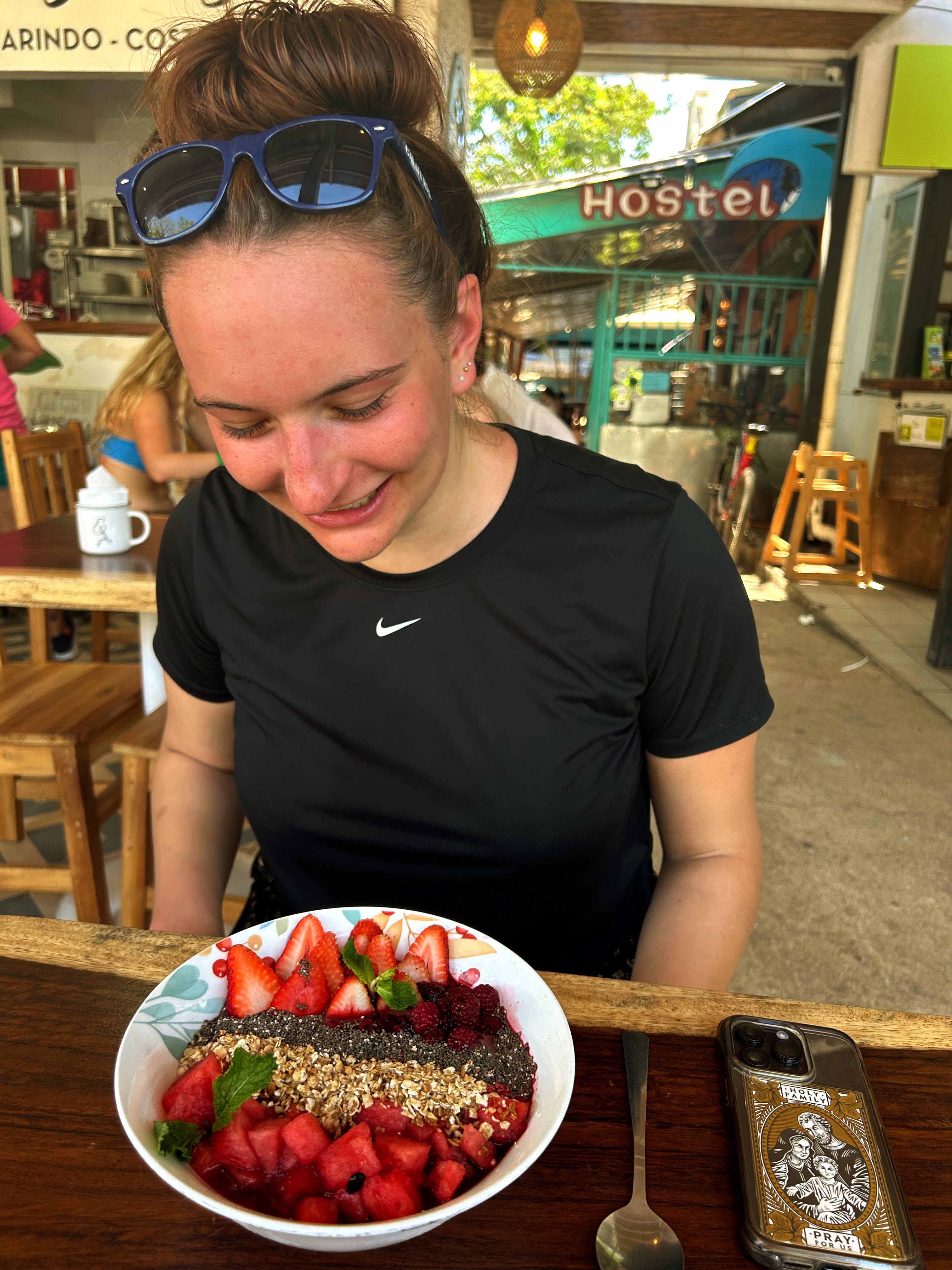 We left the surfing lessons exhausted and with very sunburned faces. After our refreshing lunch of acai bowls, we wandered around the boutiques of the surf town. Tamarindo is reminiscent of a California coastal city, and it was filled with American tourists. We were friendly with the shop keeper, Coral, of a clothing boutique and she gave us a good discount on my epic pair of flowy pants and Lydia’s cool earrings. We had a couple happy hour drinks while we watched the sunset and ate mahi mahi burgers for dinner.