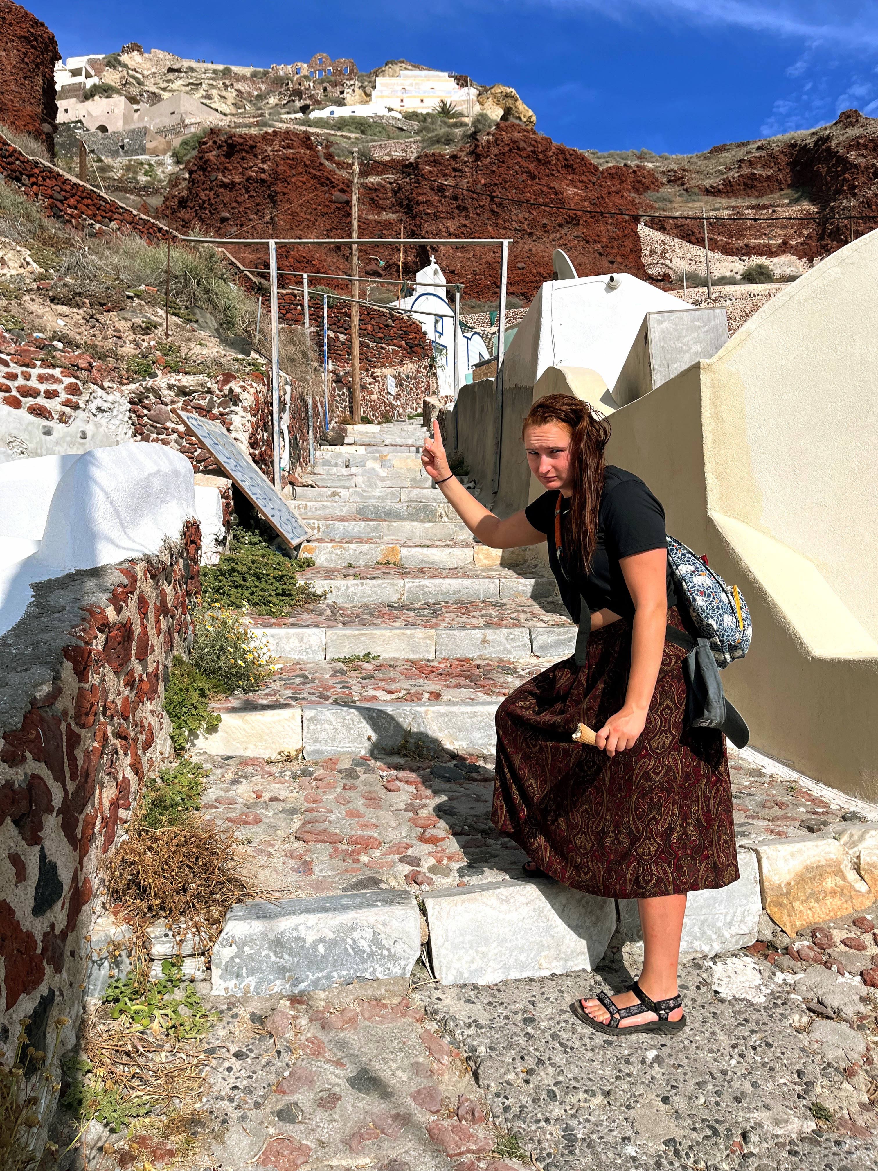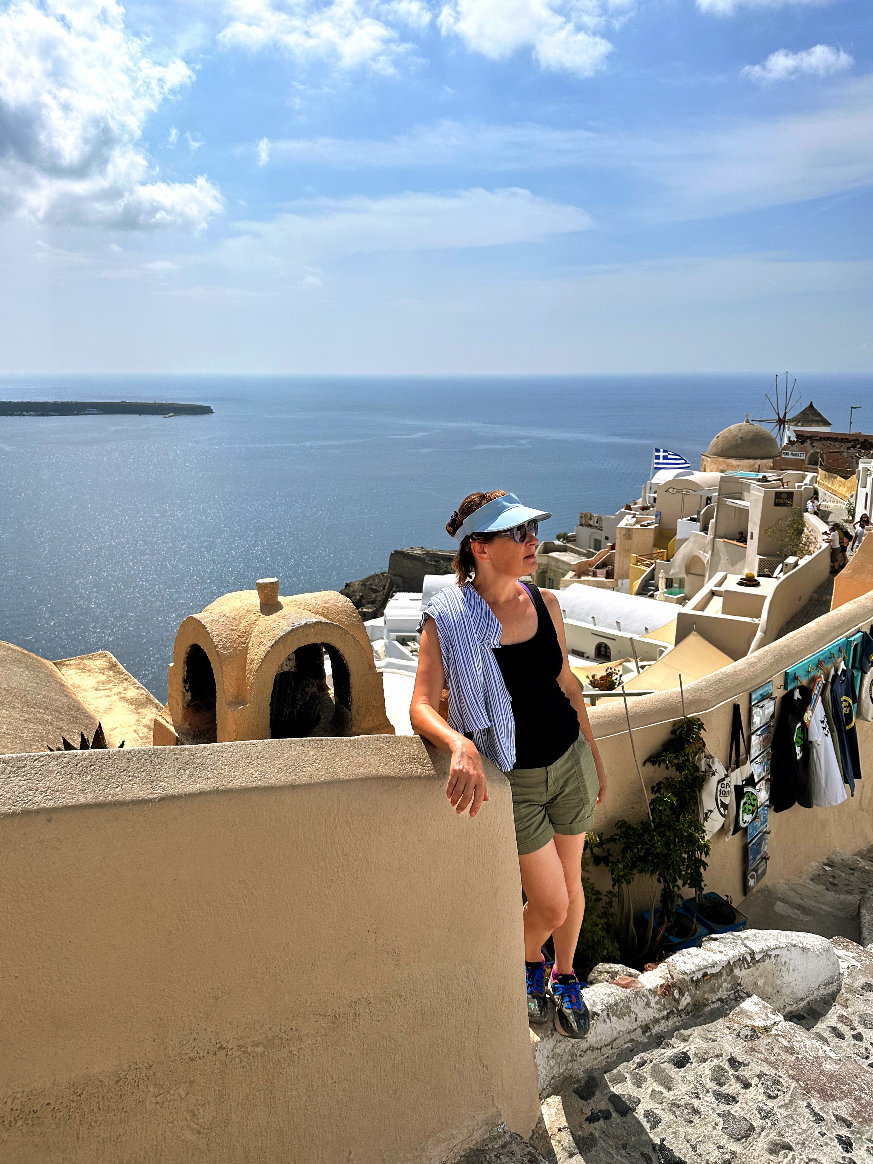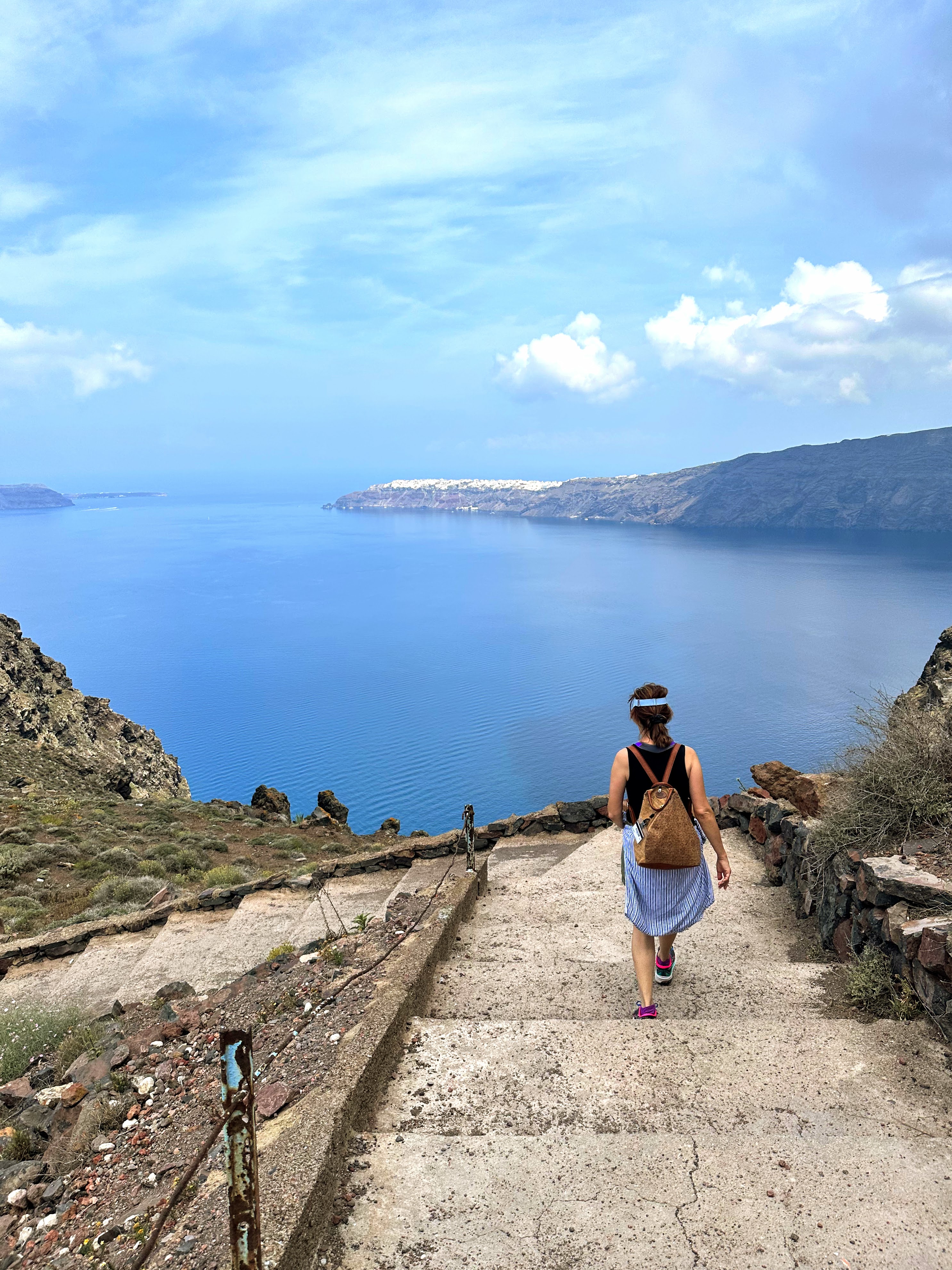 Thira is the official name for the island often referred to as Santorini. (Santorini is the Italian name for St. Irene’s – one of the churches on Thira). The two main towns of Fira and Oia, are on opposite sides of the crescent shaped island. Mom and I decided to hike the 6.5 miles between the towns, and we had a great experience!