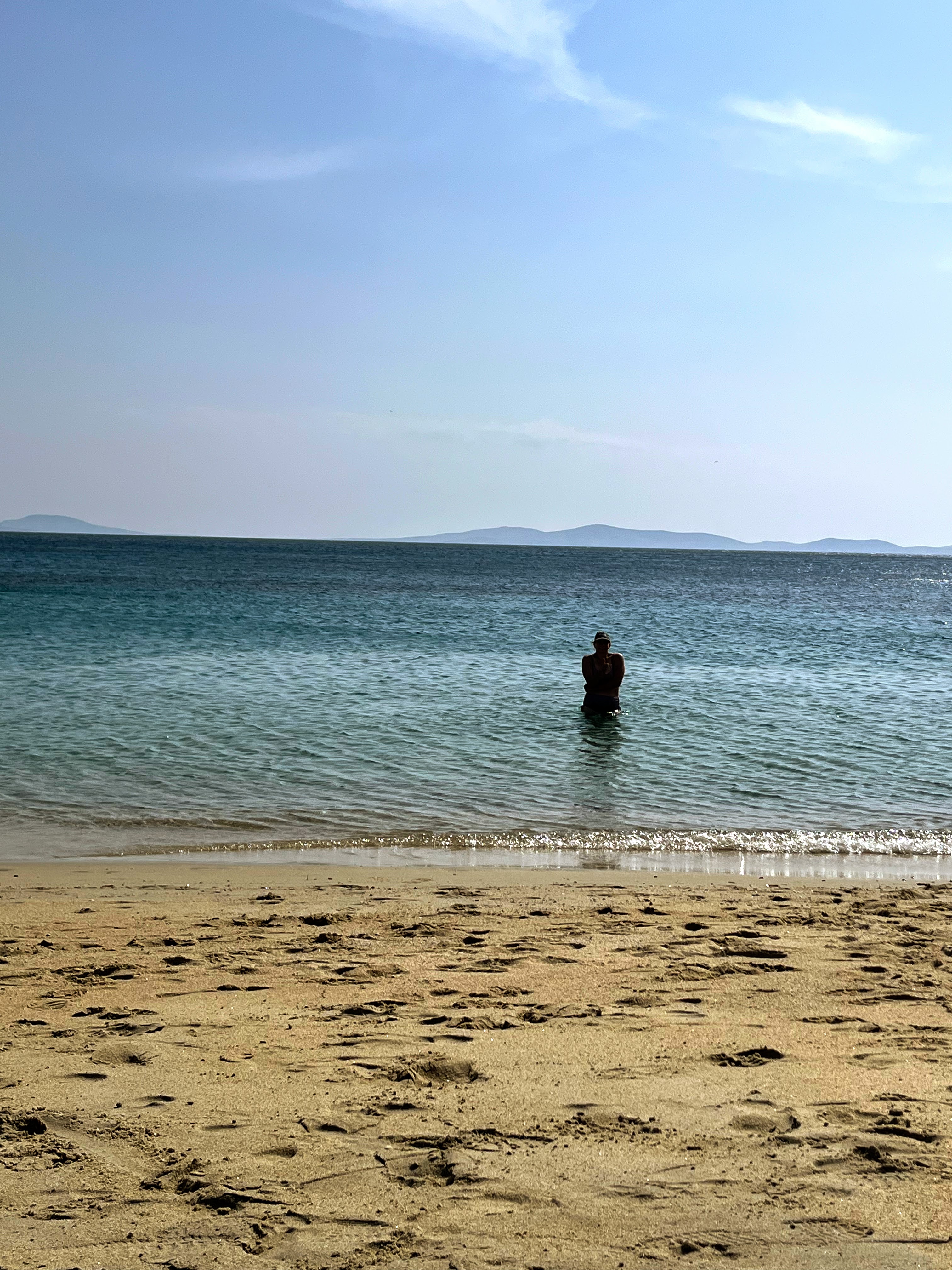 Mom and I met up after lunch to see the famous windmills and the Panagia Paraportiani church (which consists of five churches built on top of each other). We spent the evening on the beach, where the ocean (unlike Santorini) was too cold to enjoy (trust me – I tried). After dinner, I went to one of the famous clubs in Mykonos with a friend I made on the cruise ship. It was fun for a short time, and we didn’t stay long.